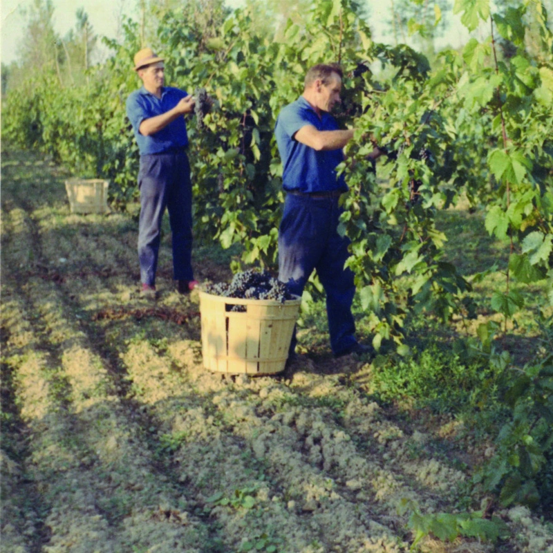 Attorno a lui e alla moglie Marcella cresce una famiglia numerosa: undici figli, coinvolti fin da piccoli nella vita dei campi e nella quotidianità della cantina. Il lavoro agricolo diventa così un’esperienza condivisa, un modo naturale e profondo di trasmettere i valori dell’impegno e del rispetto per la terra e per le persone. Negli anni Cinquanta, con il rientro dal Venezuela di Bruno Tombacco, primogenito di Giovanni Batista, l’azienda conosce una fase di sviluppo importante: viene costruita la prima parte della cantina accanto alla casa di famiglia e si organizzano depositi logistici a Venezia, Mestre e Jesolo, segnando un passo decisivo verso una struttura più solida e articolata.
